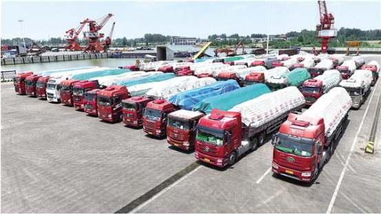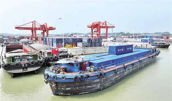 沙潁河畔,秋意正濃。一艘艘滿載貨物的船舶踏浪而行,駛向周口港范營作業區。碼頭上,龍門吊高聳入云,運輸車輛川流不息,工人們忙碌作業,呈現出一派欣欣向榮的景象。